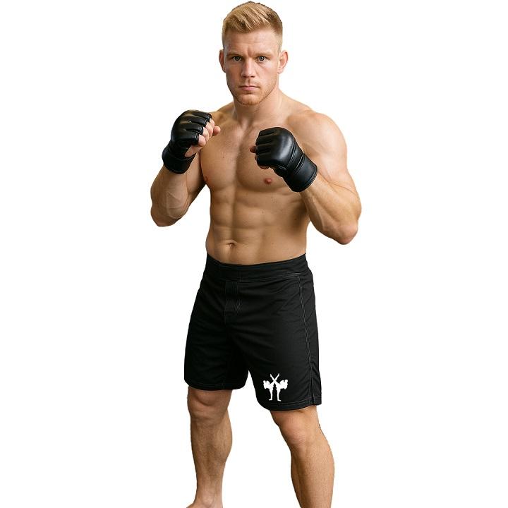 Mixed Martial Arts Shorts aus solidem Stretchgewebe. Großartig für Training und Wettkampf. Der Velcro Verbund gewährt einen sicheren Halt und schnellen Verschluss. Mit zusätzlicher Verschnürung in der Innenseite, um zusätzliche Sicherheit während dem Bodenkampf zu gewährleisten. Grosszüger Schnitt im Tiefbereich für einen Tiefschutz.Geeignet für den Kampfsport und Casual Wear.
