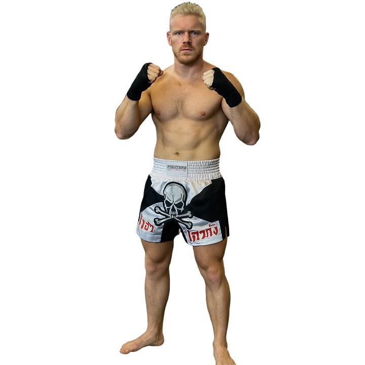 FIGHTERS Thai Shorts Skull White-Black – Für Kämpfer, die auffallen wollen.
